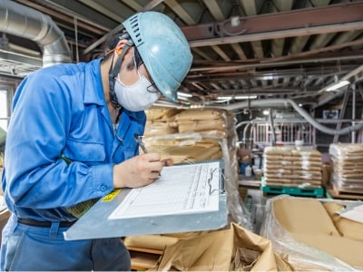 袋詰め・出荷準備:カットした製品を袋に詰め、パレットに積んで出荷準備。