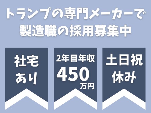 【充実した研修あり】トランプ等のカードの印刷、マシンオペレーション。ほか、メンテナスなど。