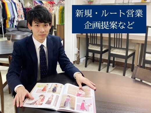 既存・新規の大学・学内生協・専門学校などへ当社の衣装や卒業式用のセットプランを提案します。情報収集や分析を行い、地域や学校の特性に営業一人ひとりの「個」もプラスしたアプローチをすることで学校指定業者となることがミッション。その後、卒業式に向けた学内展示会やプロモーションなどを展開します。内覧会での受付・衣装選びのサポートなどでお客様の思い出づくりに直接関わることも多く、記念日当日やその後の感謝の言葉が一番のやりがいとなる仕事です。