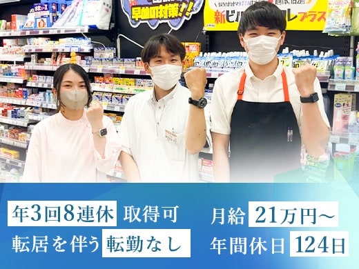 ★また、入社後3年以内を目処に、国家資格である『登録販売者』の取得を目指していただきます。取得後は登録販売者としての医薬品購入アドバイスなどもお任せします。