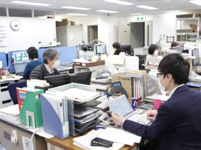 入社後は、会社説明・社内オリエンテーションの後、各部署に配属。OJTで実務を身に付けていきます。