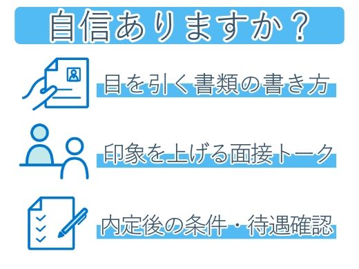 ★「やりたいことがわからない」「経歴や職歴に自信がない」という方でも大丈夫。私たちが一から相談に乗り、あなたの将来を一緒に考えていきます。