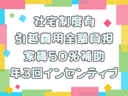■家賃補助(一部会社負担/居住3年目迄:50%、4年目:35%、5年目:20%、6年目以降:全額自己負担)