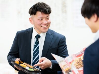 お客さまへの商品提案や、新規のお客様の開拓を行います。お客様の業態や要望を把握し、ニーズに合った商品を提案することが求められるのが営業。自分が提案した商品がお店のメニューに並んでいるのを見るとつい嬉しくなることも。