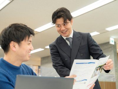 さらに、コンサルタントとしてお客さまの信頼を得られるよう、現場経験の豊富なリーダーが「なぜ成約できるのか?」という分析学に基づいた実践的なノウハウを伝授。大阪桜ノ宮エイジェンシーオフィスは全国トップクラスの成績を誇るチームですので、そこで得られるノウハウには高い価値があります。日頃のミーティングなどで勉強会やロープレ、成功事例の共有なども行います。また、商談同行は入社数年経っても必要に応じて行うなど、一人ひとりが“できる”ようになるまで、大阪桜ノ宮エイジェンシーオフィス全体で丁寧に育成していきます。