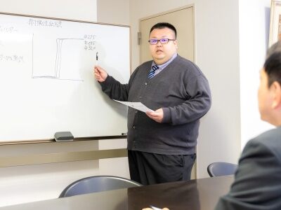 入社後は1週間の社内研修をご用意しています。取扱製品についての理解や社内制度など、会社の基礎的な部分を身につけていただきます。その後は配属先で先輩社員によるOJT研修がスタート。先輩社員に同行し、ご提案方法や書類の作り方など、業務全般を学びます。半年から1年間をOJT期間としているので、その間は独りでお客様先にご訪問することはありません。独り立ちできるまでは先輩社員が全力でサポートします。