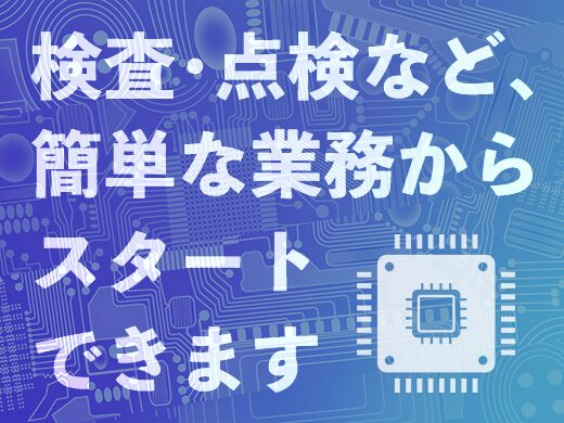 最初に書いた、まずお任せする仕事である装置の検査や点検など、簡単なお仕事からお任せしていくので安心してスタートできますよ!