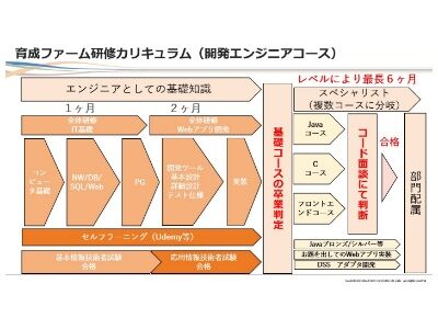 「基本情報技術者試験」の取得など知識面だけでなく、基本設計から実装までの開発工程をイチから学べる環境をご用意しております。