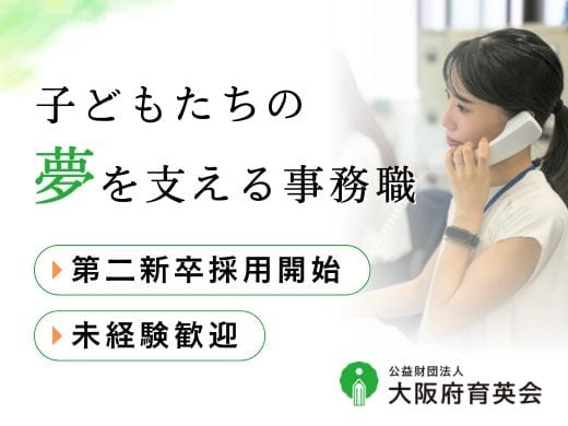 大阪府育英会事務局で、奨学生の募集や奨学金の管理などの職種に応じた事務をするお仕事です。