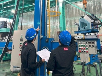 効率化のための新しい機械の要望や修理などご要望に沿って溶接装置の図面を書いた後、その機械を使って物ができるという工程があります。