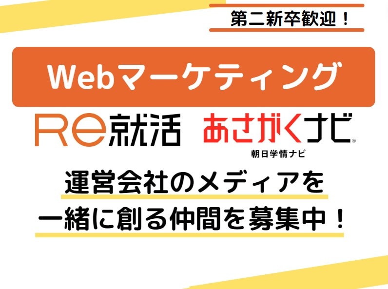 会員数230万人を超える20代専門転職サイト「Re就活」をはじめとする、当社の自社サービスの企画・集客・サイト運用を担うWebメディアデザイン部に所属していただきます。