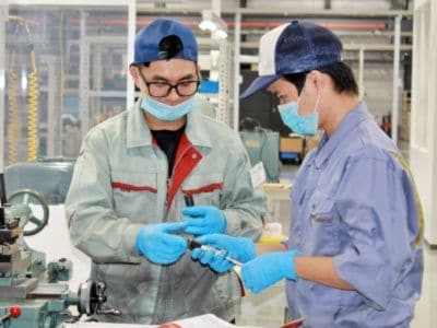 初期は簡単な機械操作からスタートし、徐々に難易度の高い加工に挑戦。加工工程を理解した後、班長やリーダーとしてチームをまとめる役割を担っていきます。