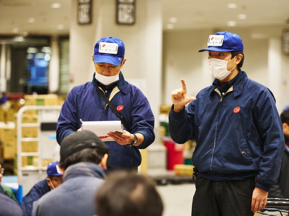 当社の仕事には「せり人」資格が必要なため、入社後2年間は先輩のもとで学びながら資格取得を目指します。