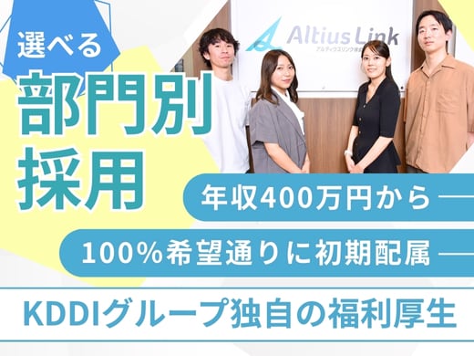 KDDIの営業部門と連携し、法人顧客とのリレーション強化や当社と顧客双方の利益最大化を目指すアカウント営業です。ナショナルアカウント、エンタープライズと呼称される企業を担当します。スマートフォン、タブレットなどのモバイル商材を中心に、クラウド・音声・SI・DXなど、幅広い通信サービスを取り扱います。既にお取引がある顧客のみ担当するため、新規顧客の開拓はありません。