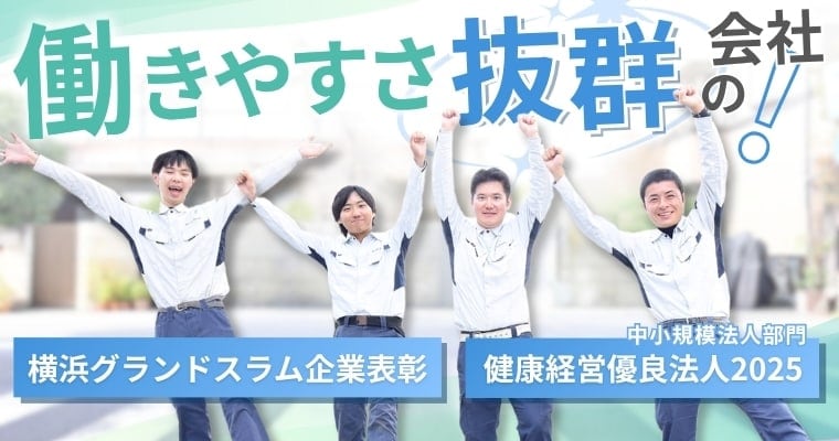 当社は、社員に健康で長く働いて欲しいという想いからワークライフバランスを推進。事業を通じて横浜に貢献し、環境にも配慮しています。その姿勢は、国や横浜市からの数々の認定というカタチで、客観的に評価されています。