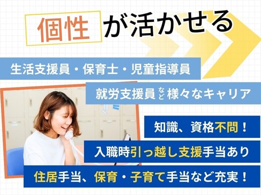 総合職(相談支援専門員、生活支援員、生活支援員(ホームヘルプ)、児童指導員、管理栄養士)