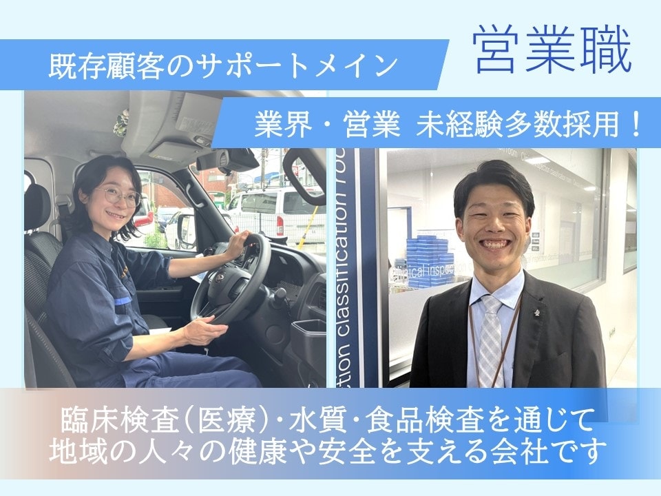 【ノルマなし】学校・商業施設・ホテル・公共機関・スーパーなどの顧客施設を訪問し、水や食品の検体回収、水のサンプリング、受水槽点検、厨房の衛生調査、顧客対応を担当いただきます。