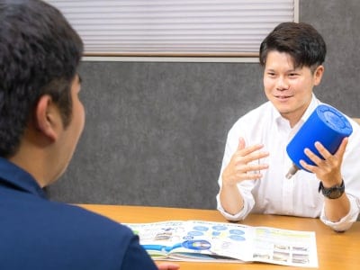 まずは先輩社員との同行からスタートします。お客様との接し方や商品知識、現場での対応などをOJT形式で学んでいただきます。東京営業所はワンフロアで全員の顔が見える環境なので、困ったことがあればすぐに質問できます。焦らず自分のペースで成長していってください。