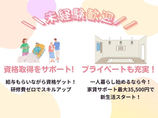 【未経験OK】資格取得のためのサポートあり ◎介護資格をお持ちの方は優遇します。