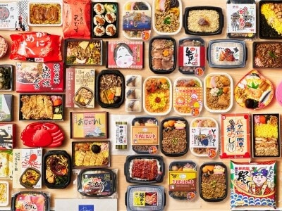 エキナカのコンビニで販売するおにぎりやサンドイッチ、駅弁から駅構内の立ち食いそばの麺まで。