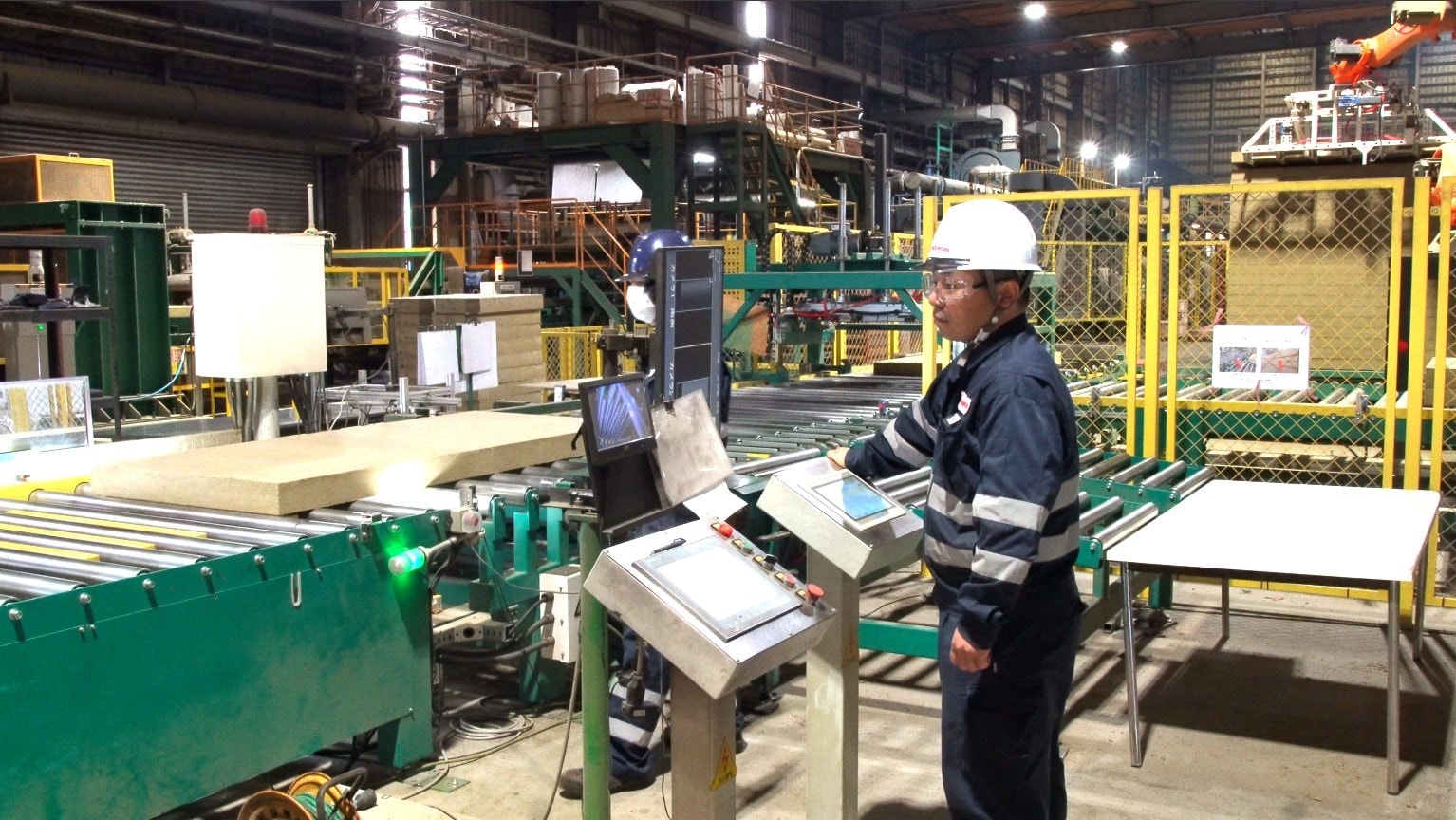 機械の切り替え時などに発生する「製品として出荷できない規格外品」を再利用するための社内リサイクル設備を操作します。