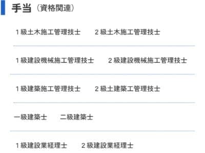 資格手当:主に施工管理技士を保有の場合
