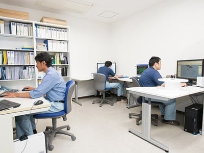 入社後は現場研修からスタート。1~2ヶ月間は現場で実際に作業しながら、「どんな機械でどんな製品をつくっているのか?」「どんな手順で作業しているのか?」を学んでいただきます。その後は生産計画の先輩の下で、生産実績のデータ入力や資材発注などを行いながら、OJTで業務を覚えていきます。