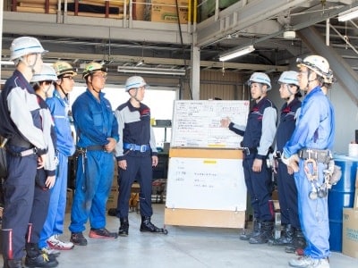 現場は、「電気・機械・計装」などの職能ごとに数名のチームに分かれて担当。