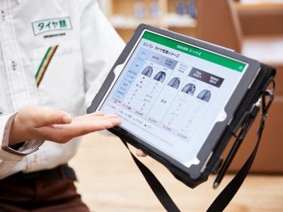 例えばタブレットで「タイヤの種類」「タイヤの交換時期」などを視覚的に紹介できるシステムなど、現在は当たり前になっている仕組みもグループ内でいち早く導入されました。