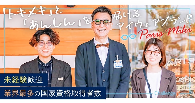パリミキ各店にて、フレームのご提案や視力測定などの接客業務、売り場レイアウト企画などをお任せします。