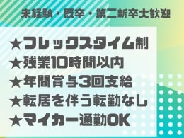 完全週休2日制 年間休日120日以上 残業少なめ(1日1時間以内) 月給25万円以上 転勤なし 面接1回 土日面接OK 書類選考なし