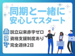 完全週休2日制 年間休日120日以上 残業少なめ(1日1時間以内) 月給25万円以上 転勤なし 面接1回 土日面接OK 書類選考なし