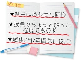 完全週休2日制 年間休日120日以上 残業少なめ(1日1時間以内) 月給25万円以上 転勤なし 面接1回 土日面接OK 書類選考なし