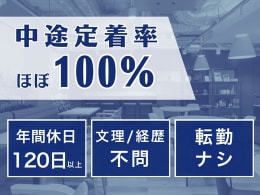 完全週休2日制 年間休日120日以上 残業少なめ(1日1時間以内) 月給25万円以上 転勤なし 面接1回 土日面接OK 書類選考なし